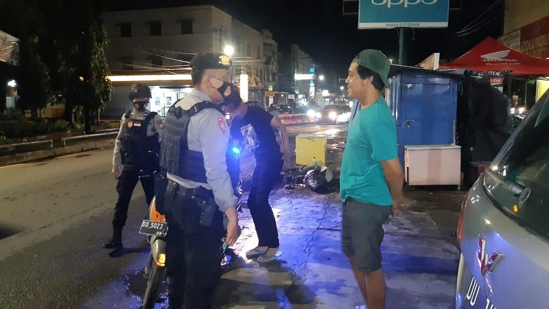 Dalam kegiatan tersebut Tim patroli menyambangi pemuda yang berkumpul di jalan Masjid Raya dengan memberi imbauan protokol kesehatan dan mengarahkan untuk membubarkan diri