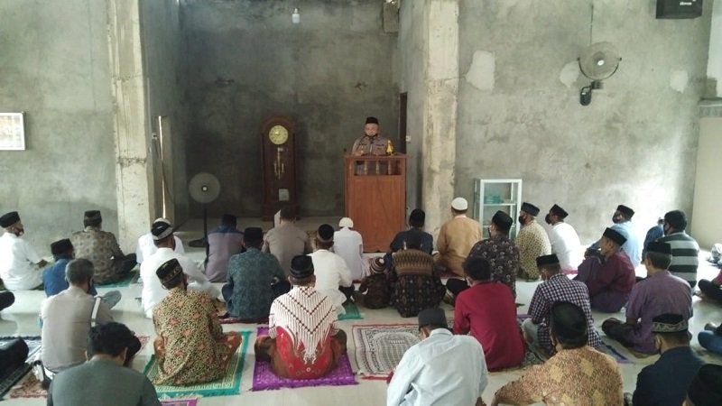 Setelah pelaksanaan sholat Jum'at, Kapolsek berdiri di depan Jemaah, menyampaikan imbauan kamtibmas kepada jemaah yang dihadir.