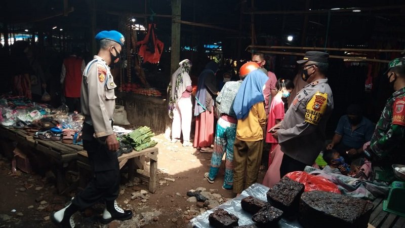 Personil Polsek Bajeng Polres Gowa kembali melaksanakan Operasi Yustisi penggunaan masker dilaksanakan di Pasar Barokah Dusun Sileo I Desa Paraikatte Kecamatan Bajeng Kabupaten Gowa, Sabtu (21/3/2021) pagi.