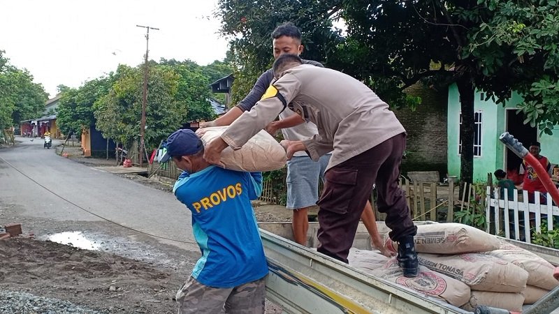 Inilah wujud rasa sosial dan kepedulian dari AIPTU Erwin kepada warganya karena memberikan makanan ala kadarnya yang sementara melakukan pengecoran Mesjid Babul Taqwa Taipakodong 1 Desa Bungaejaya, Bhabinkamtibmas juga turut serta membantu warga dalam pengecoran mesjid tersebut.