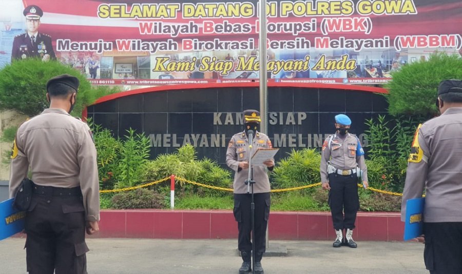 Bertempat di lapangan Apel Polres Gowa seluruh personil melaksanakan apel pagi yang dilimpin Kepala Bagian Sumber Daya Manusia Polres Gowa Kompol Erra Suryanigtyastuti SSI, SIK , Selasa (30/03/21).