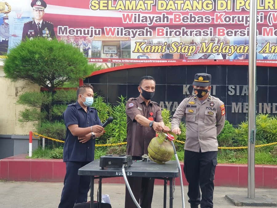 Usai apel pagi, Polres Gowa menggelar sosialisasi cara penggunaan dan pengamanan gas elpiji bersama Koperasi Purna Pertamina (Kopana), Selasa (30/03/21).