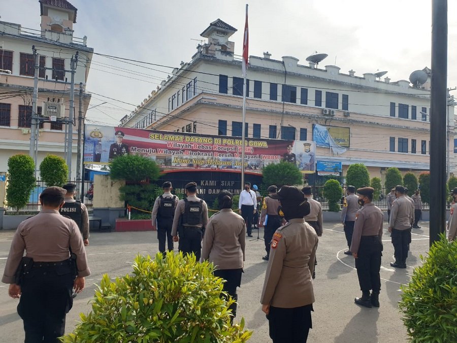 Bertempat dihalaman Mako Polres Gowa Kasat Narkoba AKP Maulud memimpin Apel pagi personil guna mengecek kesiapan dan pemberian informasi atau pengarahan sebelum melaksanakan tugas. Rabu (21/04/21).