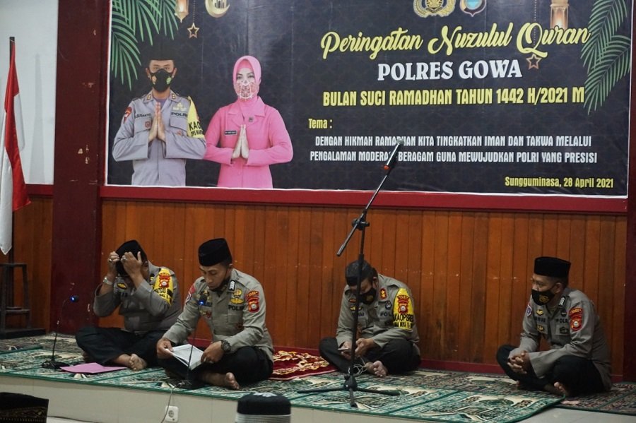 Peringatan malam Nuzulul Qur’an 1442 H/2021 M yang di gelar oleh Polres Gowa dengan menerapkan protokol kesehatan serta jaga jarak, yang dilaksanakan di Aula Endra Darmalaksana, Rabu (28/4/2021).