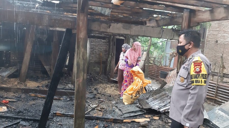 Kapolsek Manuju Iptu Jamaluddin mendatangi korban kebakaran rumah di Dusun Bontomanai, Desa Bilalang Kecamatan Manuju, Kabupaten Gowa, Senin (17/5).