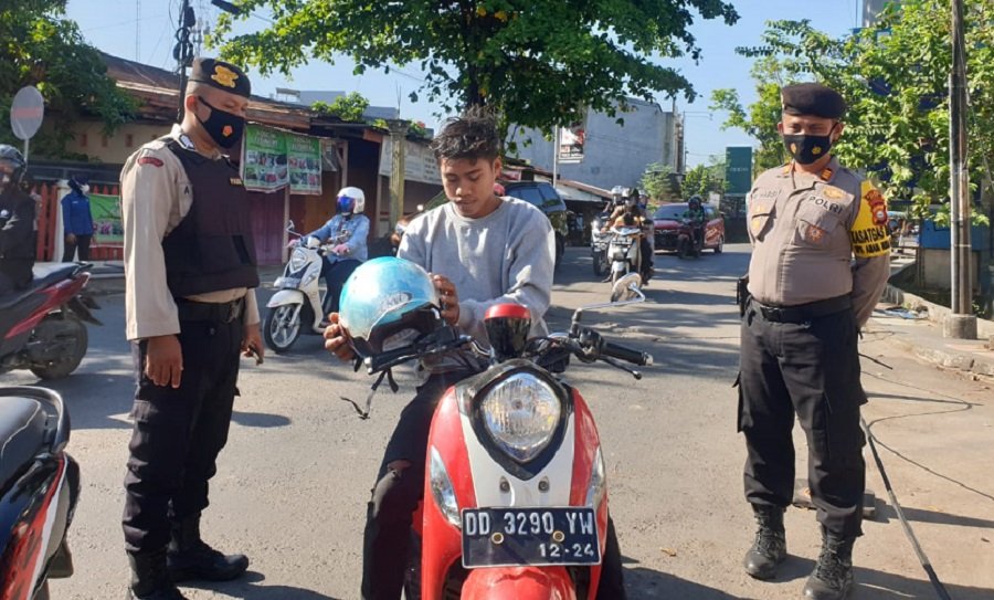 sebelum lanjut melaksanakan operasi yustisi penggunaan masker di Jl Hos Cokrominoto Sungguminasa
