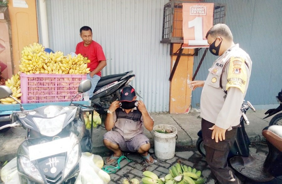 "Dengan rutin blusukan ke pasar-pasar untuk mengingatkan warga soal protokol kesehatan agar meminimalisir penyebaran Covid-19. Adapun imbauan diberikan seperti selalu menggunakan masker, sering-sering cuci tangan dengan menggunakan sabun dan menyiapkan hand sanitizer, jaga jarak sosial serta menjaga kebersihan diri dan lingkungan, karena hal ini merupakan salah satu bentuk pencegahan penyebaran virus Covid-19,” kata Paur Subbag Humas Ipda Burhanuddin Karim, Rabu (02/06/2021).