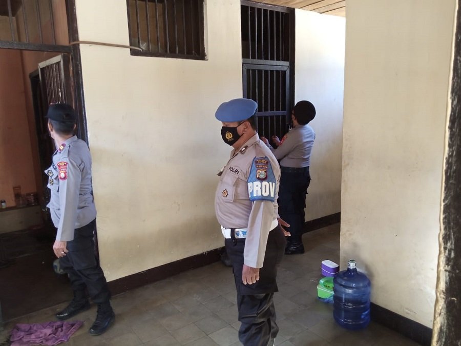 Wakapolsek Pallangga Polres Gowa IPTU H. Achmad, setelah melaksanakan apel bersama Kanit Sabhara IPDA Basir, Kanit Provos AIPTU Eko Mulyono dan piket Reskrim melakukan pengecekan keruang tahanan, kamis (03/06/21).