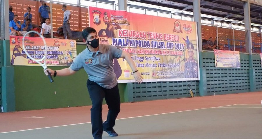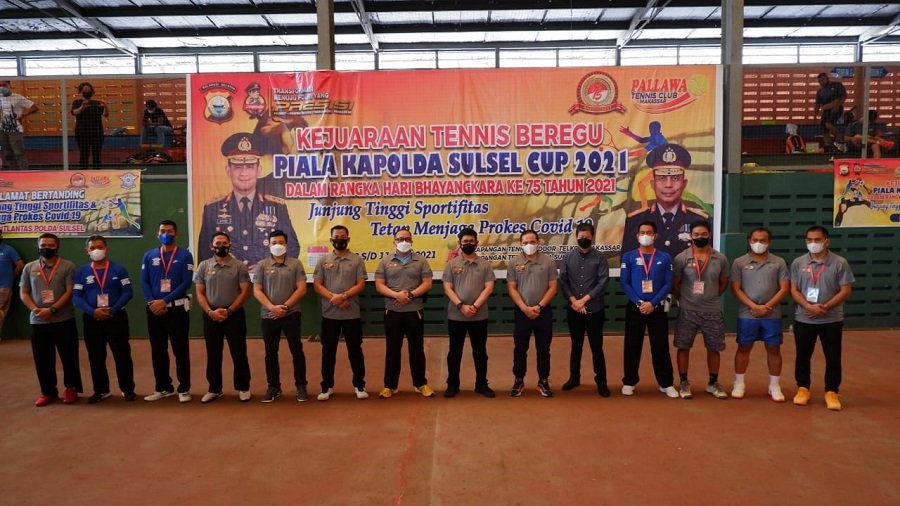 Kepala Kepolisian Daerah Sulawesi Selatan Irjen Pol Drs. Merdisyam, M.Si., pimpin pembukaan Yurnamen Tennis Beregu Piala Kapolda Sulsel Cup Tahun 2021 di Lapangan Tennis Telkom Jl. Ap. Pettarani, Kota Makassar, Selasa (08/06/2021) pada pukul 15.00 Wita.