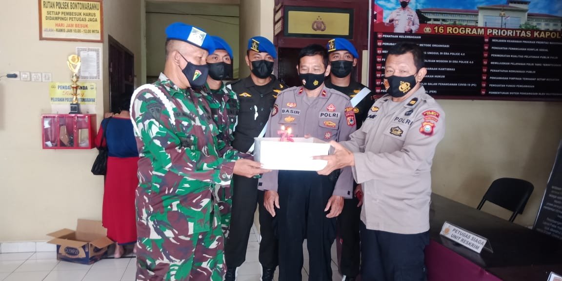 Pada ulang tahun Bhayangkara ke 75 tahun ini, Divisi 3 Kostrad Gowa mendatangi Polsek Bontomarannu memberikan kado spesial sebagai bentuk sinergitas, Kamis 01/06/2021 siang.