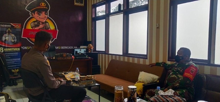 Kapolsek Bontomarannu Iptu Bahtiar, S.Sos, SH, MH bersama Danramil 03 Bontomarannu Kapten Inf. I Made Ambara Jaya mengikuti rapat virtual diruang kerja Kapolsek Bontomarannu.