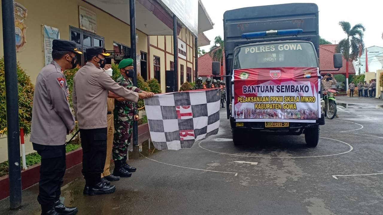 Bansos yang disiapkan oleh Pemkab Gowa, Polres Gowa dan Kodim 1409 Gowa ini dilakukan sebagai bentuk kegiatan imbangan PPKM skala mikro yang saat ini sementara berlangsung di kabupaten Gowa, ungkap Kapolres Gowa, AKBP Tri Goffarudin.