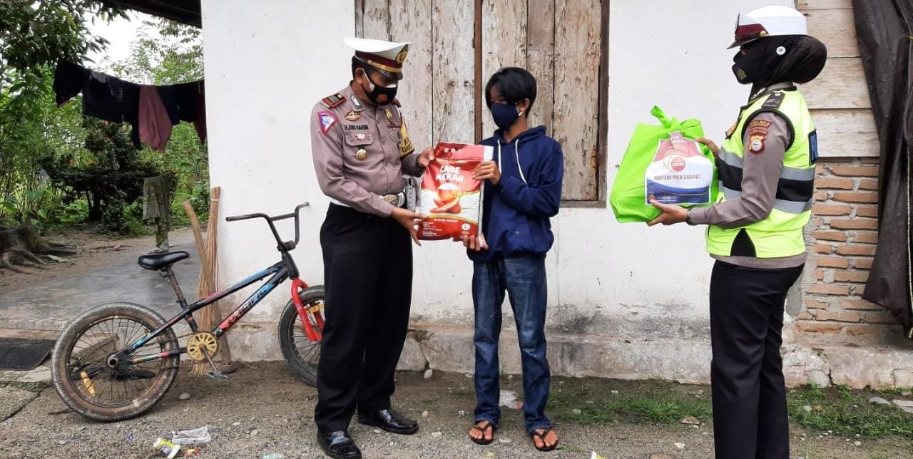 Polres Luwu Utara (Lutra) Sulawesi Selatan (Sulsel) melalui Satuan Lalu Lintas memulai aksi membagi-bagikan ratusan paket sembako kepada warga terdampak corona virus, selama penerapan Pemberlakuan Pembatasan Kegiatan Masyarakat (PPKM) Darurat.
