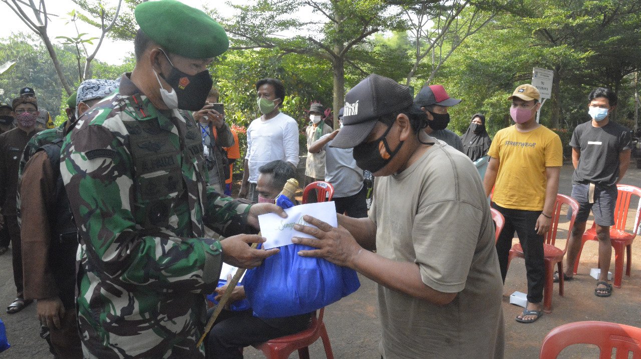 Puluhan penggali makam khusus jenazah penderita Covid-19 wilayah Kota Bogor di dua TPU berbeda mendapatkan bantuan sembako dan santunan dari Danrem 061/SK, Kamis (15/07/2021).