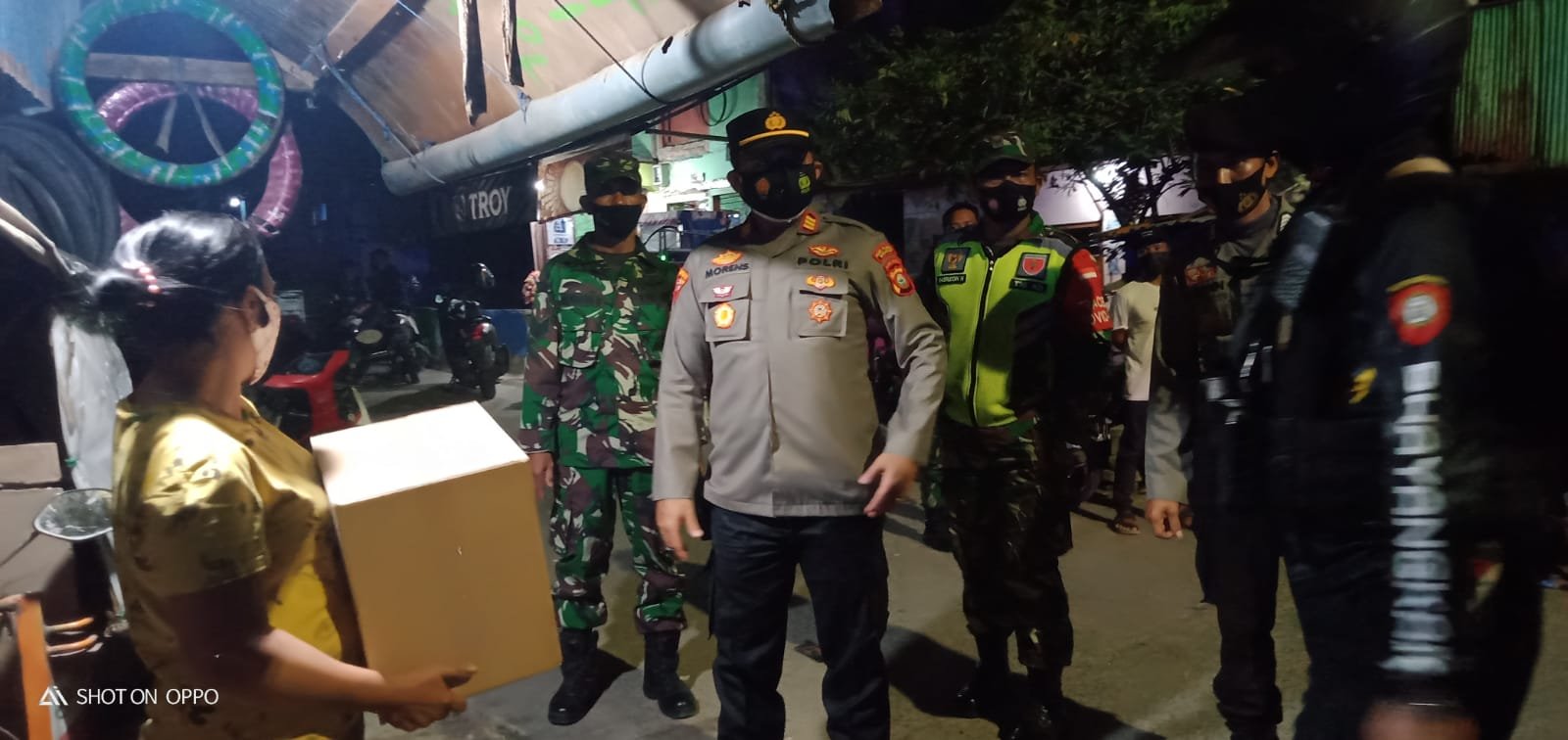 Polres Pelabuhan Makassar bersama TNI menggelar patroli berskala besar dan membagikan sembako kepada masyarakat kurang mampu.
