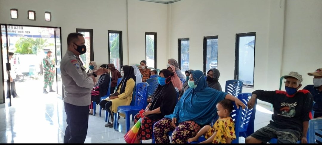 Bhabinkamtibmas Desa Romangloe dan Desa Bili Bili Kab Gowa Bripka Rusli mengawal penyaluran BLT sumber Dana Desa di Kantor Desa Bili Bili Kecamatan Bontomarannu, Rabu (28/07/2021) siang.