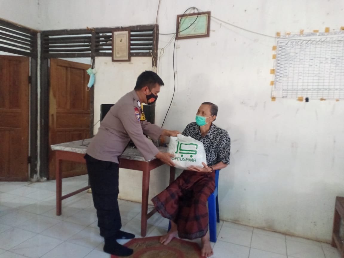 Personil babinkamtibmas Polsek Manuju polres Gowa serentai silaturahmi ke tokoh masyarakat diwilayahnya dengan membawa paket sembako, Rabu (28/07/2021).
