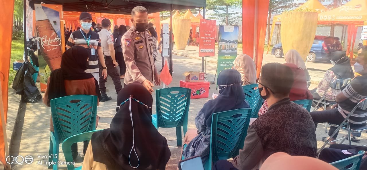 Saya menghimbau kepada seluruh peserta vaksinasi untuk menjaga jarak dan tidak berkerumun dan ikuti nomor antrian yang sudah diberikan ujarnya, himbau Aiptu Syamsul Bahri di lokasi vaksinasi.