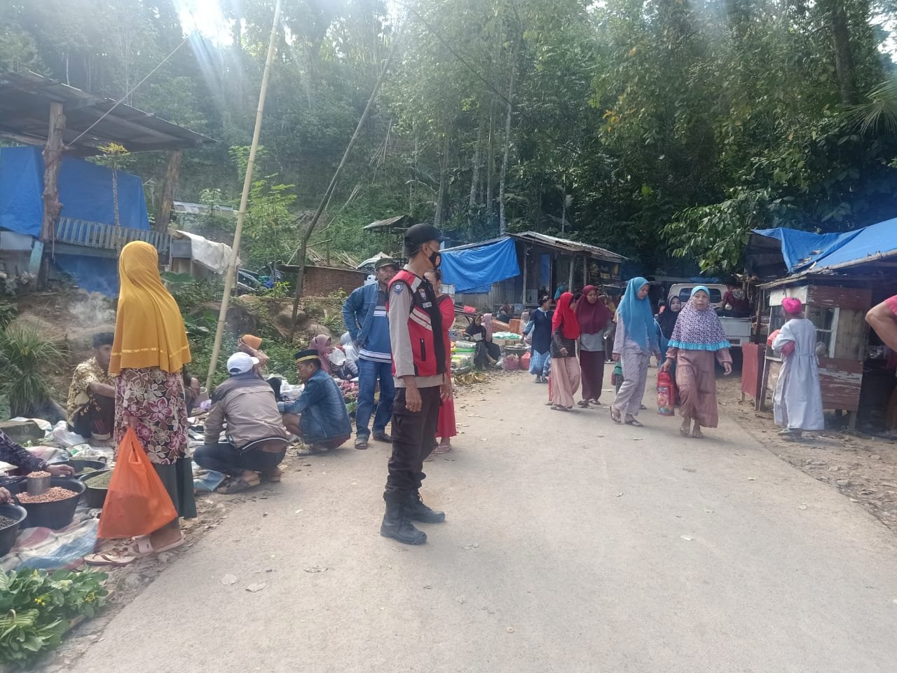 Bhabinkamtibmas Polsek Bungaya Polres Gowa Aipda Abdul Rahman mengunjungi pasar Tombolo Desa Lassa-lassa, Kecamatan Bontolempangan, Kabupaten Gowa, jumat (30/7/2021).