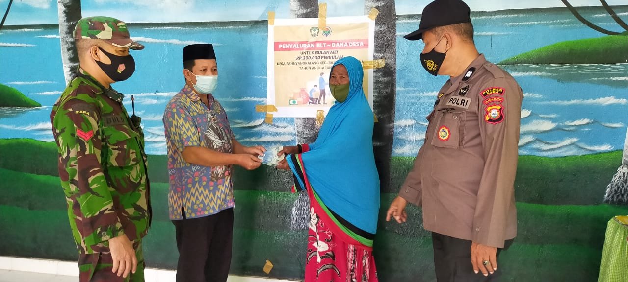 Bhabinkamtibmas Desa Panyangkalang Polsek Bajeng Polres Gowa Aiptu Abd. Rahim bersama Babinsa, melaksanakan monitoring dan pengamanan terhadap Pencairan BLT dana Desa Tahun 2021, Jum'at (30/7/2021).