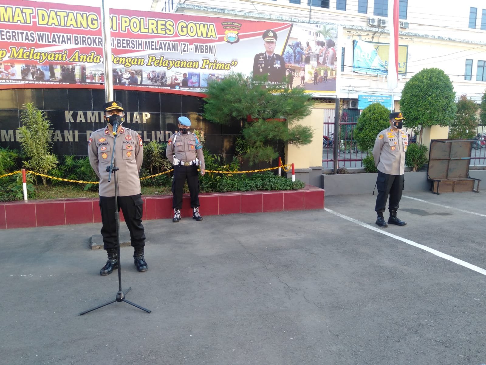 Wakapolres Gowa Kompol Soma Miharja mewakili Kapolres AKBP. Tri Goffarudin. P. SIK..,MH pada pelaksanaan apel pagi menjelaskan beberapa arahan untuk ditindaklanjuti para personil.