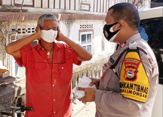 "Seluruh personel Bhabinkamtibmas Polres Pelabuhan Makassar rutin melakukan patroli dialogis dan membagikan masker serta dan memnerikan imbauan kepada warga untuk tetap menerapkan protokol kesehatan dengan selalu mengenakan masker yang baik dan benar," ucap Kasubsipidm Sihumas Ipda Burhanuddin Karim.