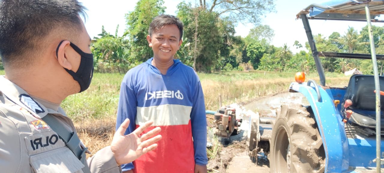Dalam kunjungannya tersebut, Bripka Aswin Jahar, SE sekaligus turun langsung kesawah membantu petani mengolah lahan dengan mengoperasikan mesin Traktor yang berlokasi Dusun Lanra lanra di Desa Pabbentengang Kecamatan Bajeng Kabupaten Gowa, Selasa (24/8/2021).