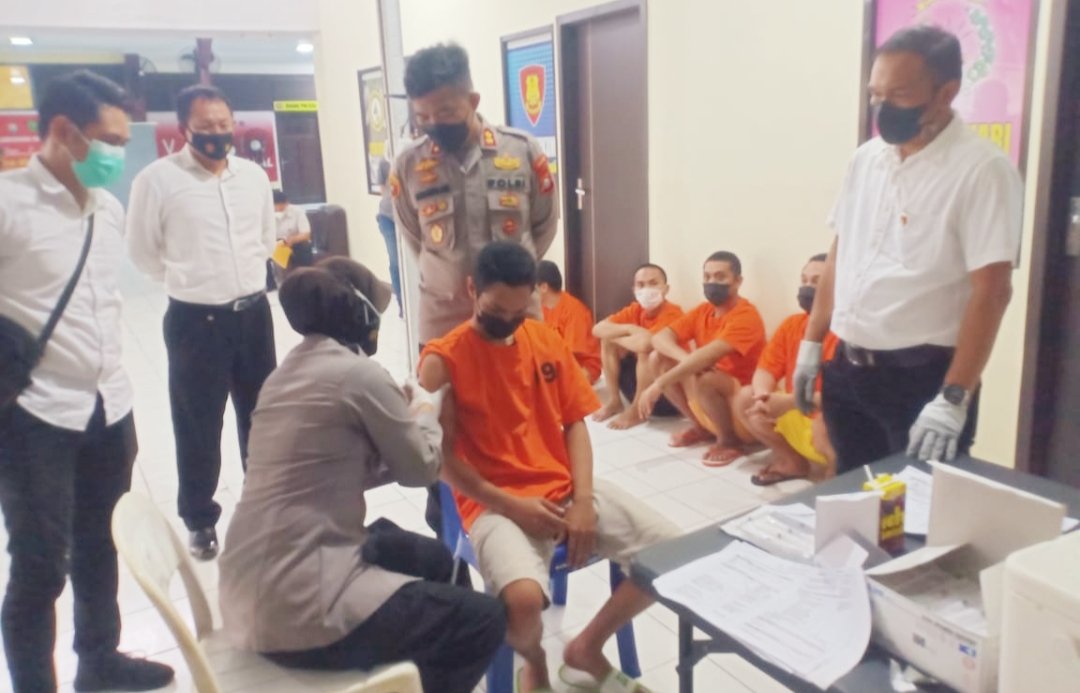 "Vaksinasi bagi penghuni rumah tahanan Polres Pelabuhan ini sebagai upaya untuk meminimalkan penyebaran virus Covid-19 dan menjamin hak atas kesehatan tahanan," terang Kasubsipidm Sihumas Ipda Burhanuddin Karim.