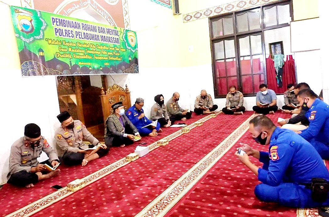 Guna meningkatkan keimanan dan ketaqwaan anggotw kepada Allah SWT, Polres Pelabuhan Makassar dan Polsek jajaran menggelar kegiatan Pembinaan Rohani dan Mental (Binrohtal), Kamis (26/08/2021) di Masjid Al-Muhajirin Mapolres Pelabuhan Makassar dan aula Vicon bagi personel yang beragama Nasrani.