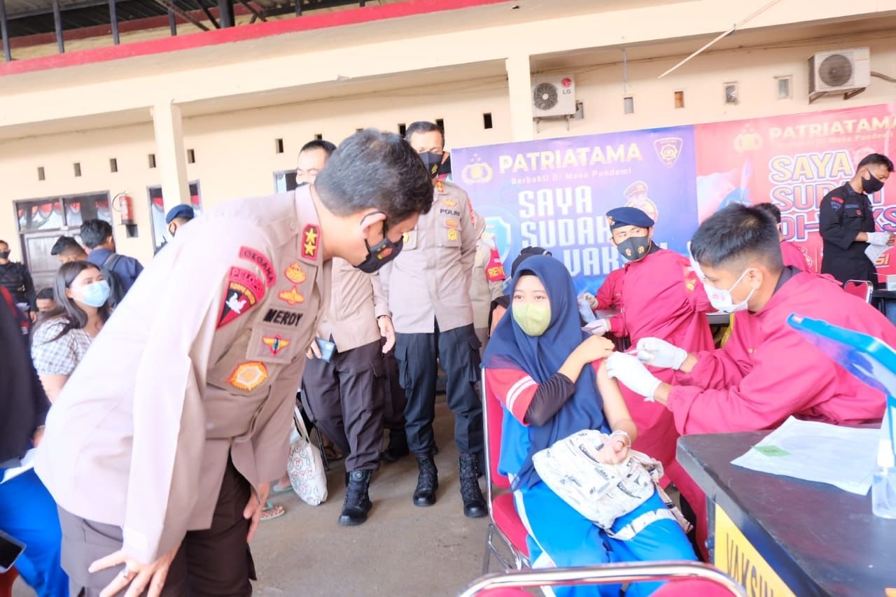 Kepala Kepolisian Daerah Sulawesi Selatan (Kapolda Sulsel), Irjen Pol Merdisyam meninjau langsung pelaksanaan vaksinasi massal dan bakti sosial yang digelar Alumni Akpol Angkatan 1995 Patriatama Berbhakti di Makosat Brimob Jl KS .Tubun Makassar, Jumat (03/09/2021).