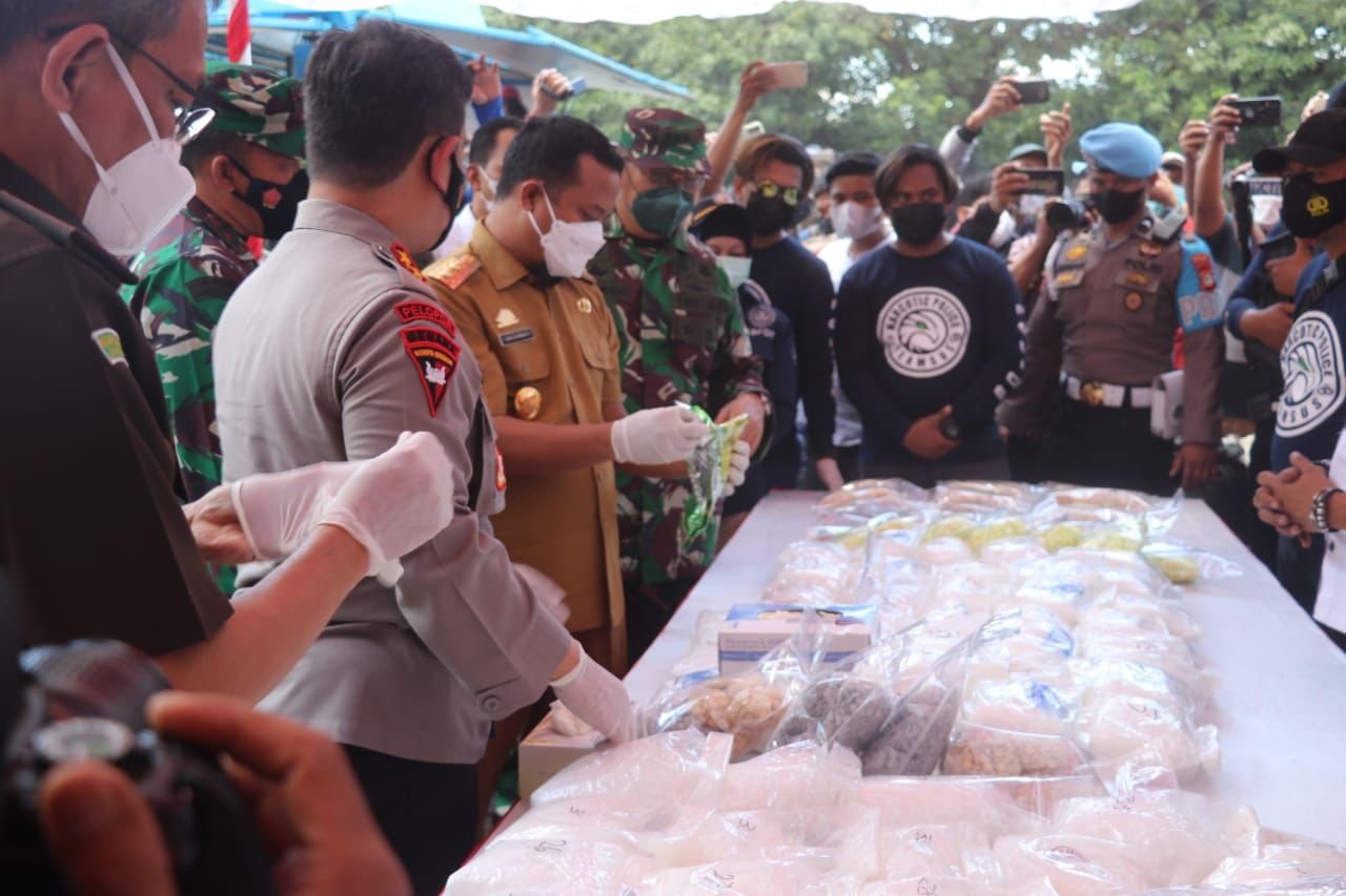 Kapolda Sulawesi Selatan (Sulsel), Irjen Pol Merdisyam memimpin langsung kegiatan pemusnahan barang bukti puluhan Kilk narkoba jenis sabu dan puluhan ribu butir Ekstasi di lapangan apel Mapolda Sulsel, Selasa (28/09/2021).