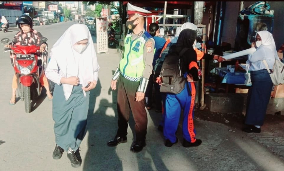 "Penempatan personel Satlantas di sekolah dilakukan untuk mengantisipasi atau mengurai kemacetan lalu lintas, termasuk melakukan pengamanan dan menyeberangkan siswa-siswi," ujar Kasubsipidm Sihumas Ipda Burhanuddin Karim, Senin (01/11/2021).