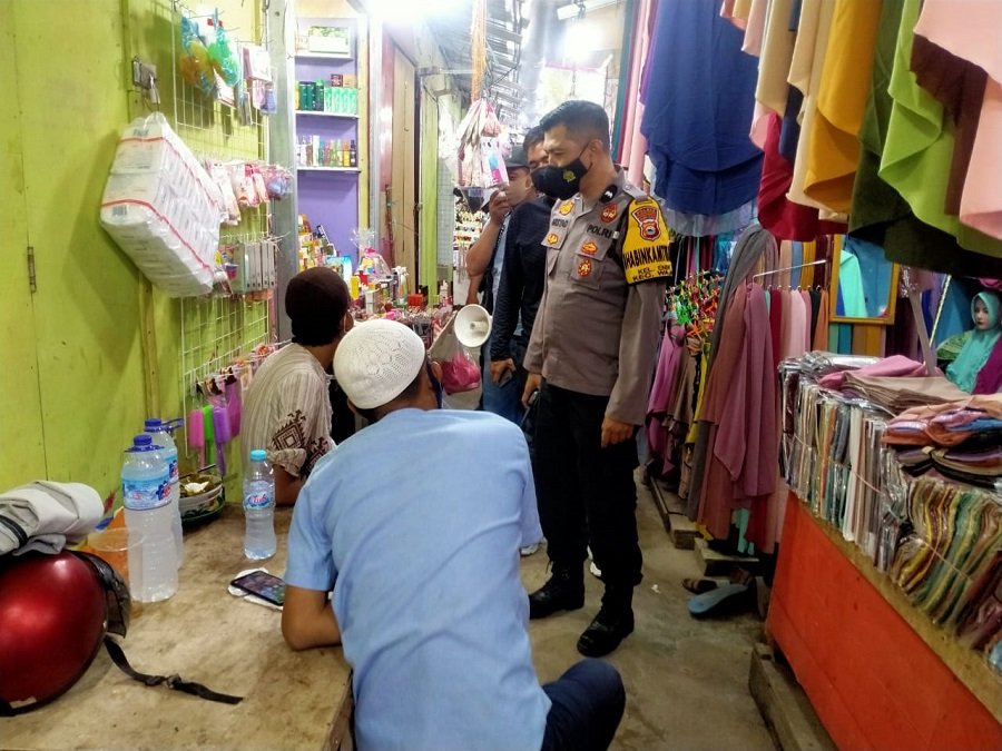Dukung PPKM serta sosialisasikan Vaksinasi Covid-19, Bhabinkamtibmas Kelurahan Ende Aipda Arsyad lakukan blusukan keluar masuk toko dan warung dimana tempat tersebut berkumpulnya berbagai macam transaksi ekonomi yang sangat rentan penularan virus Covid-19.