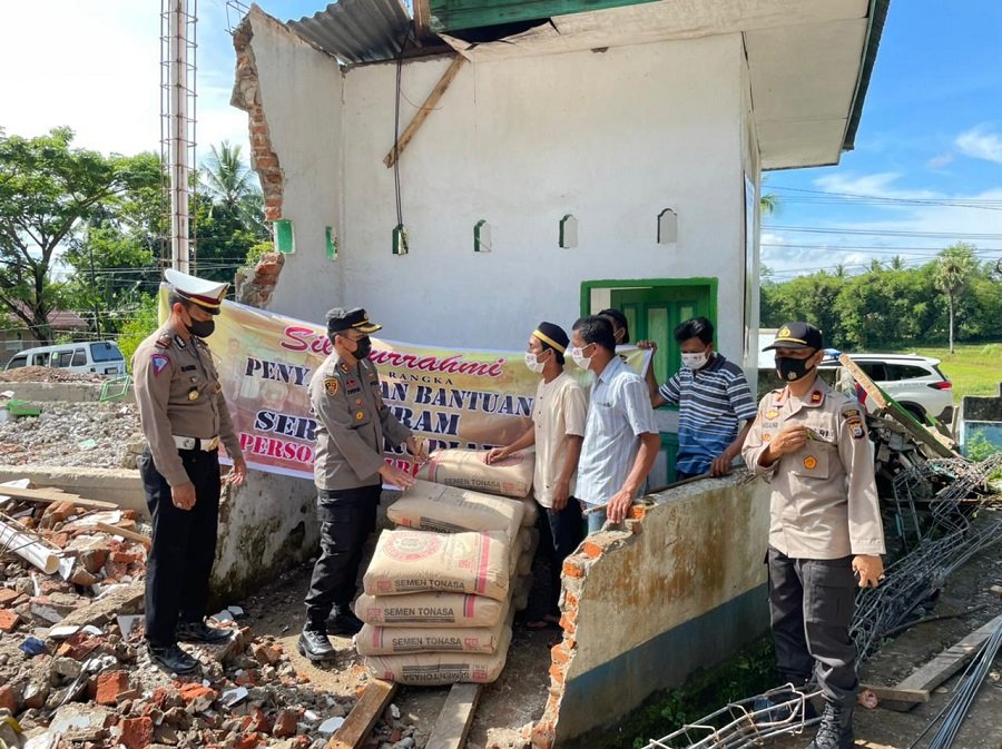 Kapolres Sinjai AKBP Iwan Irmawan, didampingi beberapa personel Polres Sinjai melakukan aksi sosial berupa pemberian material bangunan jenis Semen untuk pembangunan Masjid