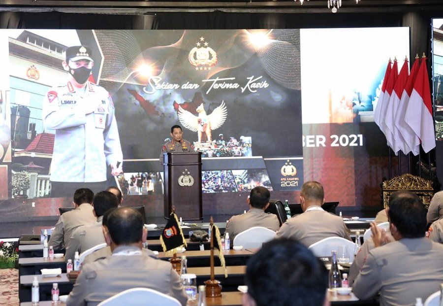 Kapolri Jenderal Listyo Sigit Prabowo menyampaikan beberapa hal penting dalam Apel Kasatwil Polri. Dihadapan personel, Ia meminta agar capaian pengendalian pandemi Covid-19 yang sudah sangat baik terus dipertahankan. Atas hal ini, Kapolri mengapresiasi seluruh kerja keras personel Polri dalam penanganan Covid-19 selama ini.