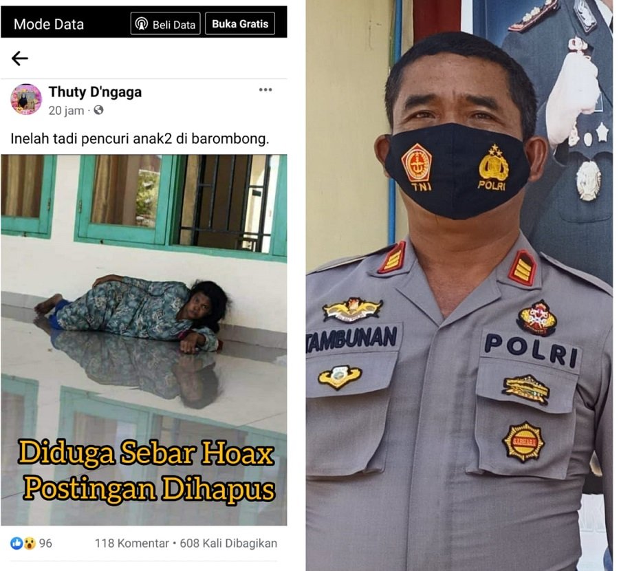 Terkait viralnya postingan foto seseorang yang sementara istrahat di sebuah bangunan dengan narasi "pencuri anak anak di Barombong" pemilik akun FB atas nama Thuty D'ngaga telah dihapus.