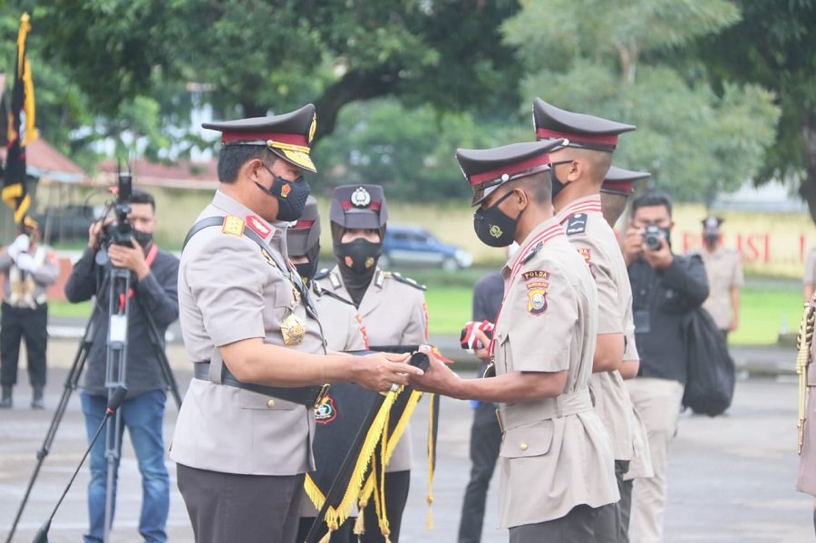 Kepala Kepolisian Daerah Sulawesi Selatan (Kapolda Sulsel), Irjen. Pol. Drs. Nana Sudjana, A.S., M.M., memimpin upacara penutupan pendidikan pembentukan Bintara Polri TA. 2021 di Sekolah Polisi Negara (SPN) Batua, Polda Sulsel. Rabu (22/12/21).