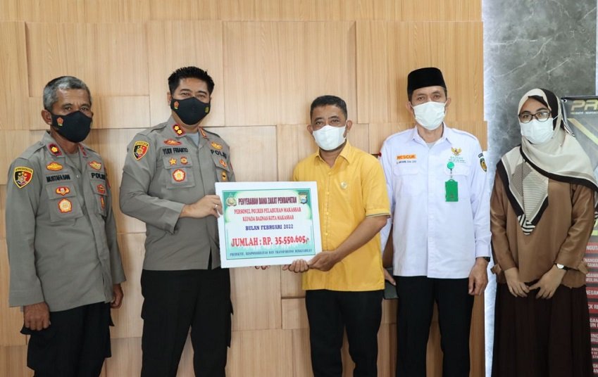 Kepolisian Resor Pelabuhan Makassar kembali melakukan kewajibannya untuk membayar zakat mal melalui Badan Amil Zakat Nasional (Baznas) Makassar, di Mapolres Pelabuhan, Jum'at (04/03/2022).