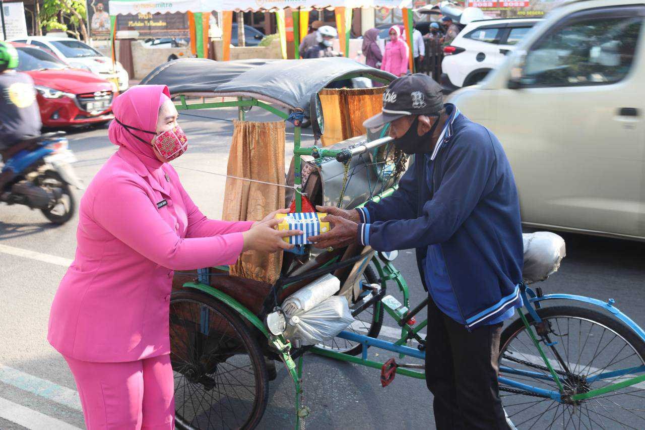 Bhayangkari Polres Pelabuhan Makassar membagi-bagikan Takjil Ramadhan kepada masyarakat yang melintas di depan Mapolres tersebut, Senin (11/04/2022).
