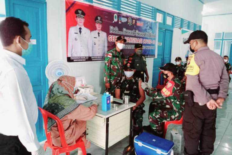 Kapten Inf Hasan Efendi selaku Dan SSK 2 mengemukakan,kami selalu bersinergi dengan Polri dan tenaga kesehatan Puskesmas dalam gebyar Vaksinasi Covid-19 agar terhindar dari penyebaran Covid-19.