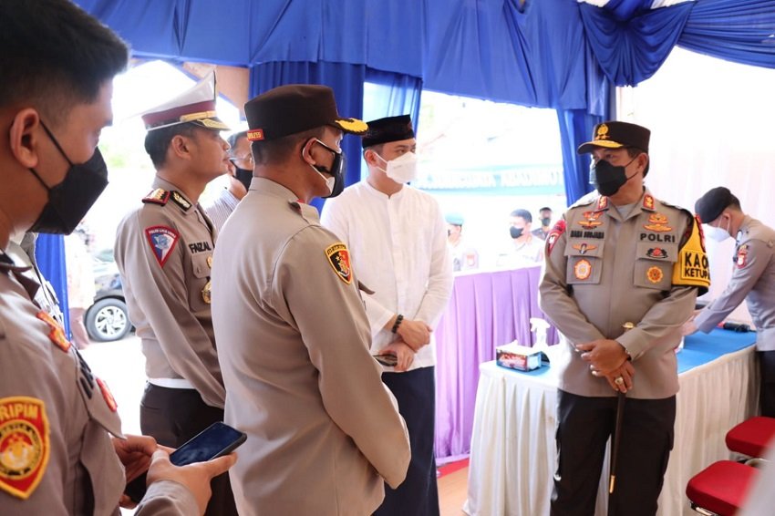 Kapolda Sulsel Irjen Pol. Nana Sudjana AS, MM bersama Pejabat Utama Polda Sulsel melakukan kunjungan ke Pos Pelayanan Operasi Ketupat 2022 yang berada di perbatasan Kabupaten Gowa dan Kota Makassar Jln. Sultan Hasanuddin Kecamatan Somba Opu, Kabupaten Gowa, Jumat (29/04/2022).