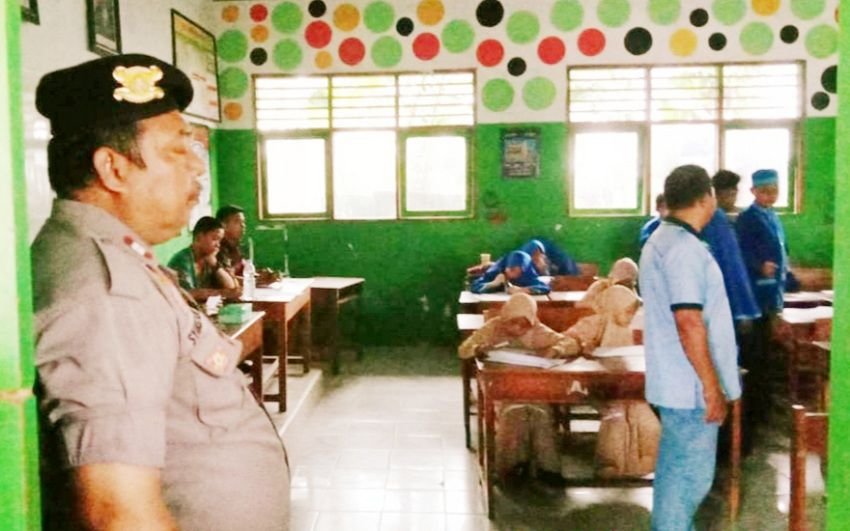 Bertempat di SMPN 5 Pallangga Kabupaten Gowa, Kanit Binmas Polsek Pallangga Aiptu Syamsualam melaksanakan pengamanan ujian Santri TPA/TPQ se-Kecamatan Pallangga, Minggu (12/01/2020).