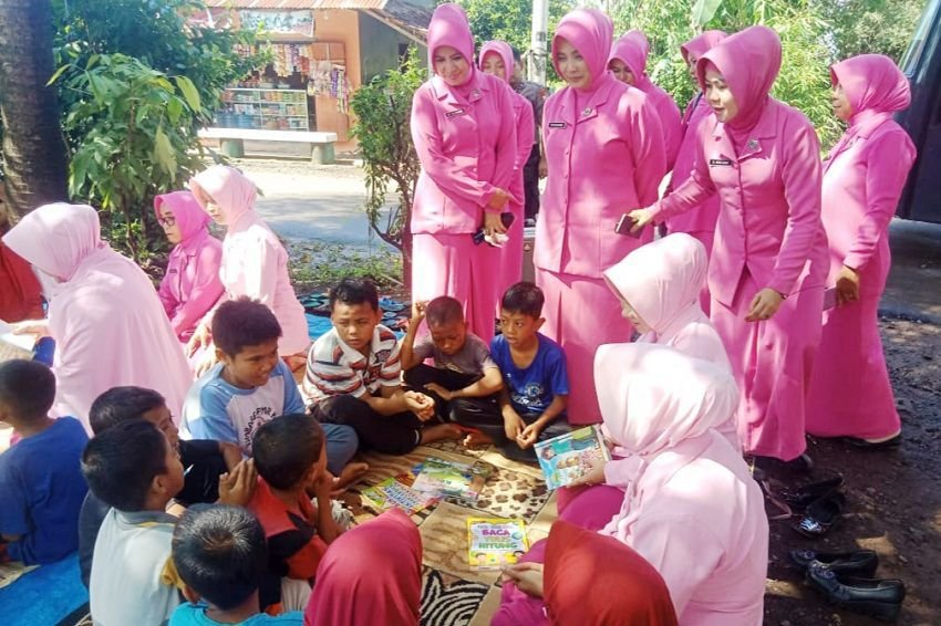 Dengan suasana santai dan di alam terbuka, tampak Ketua Bhayangkari dan pengurus memberi pelajaran mendongeng, membaca, berhitung serta mengaji kepada anak-anak di rumah singgah Bhayangkara yang terletak di Kampung Lempangan, Kecamatan Bontomarannu.