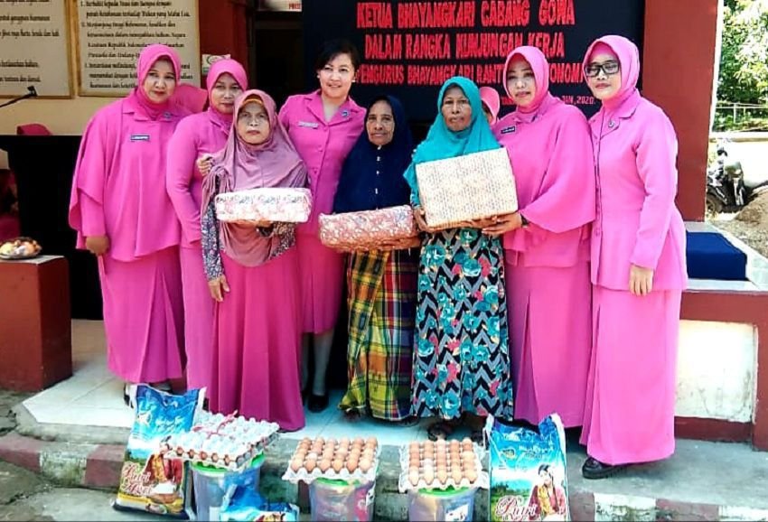 Di sela pelaksanaan kunjungan kerja dan tatap muka di Ranting Bontonompo, Bhayangkari Cabang Gowa dan Ranting Bontonompo gelar bakti sosial, Rabu (22/01/2020).