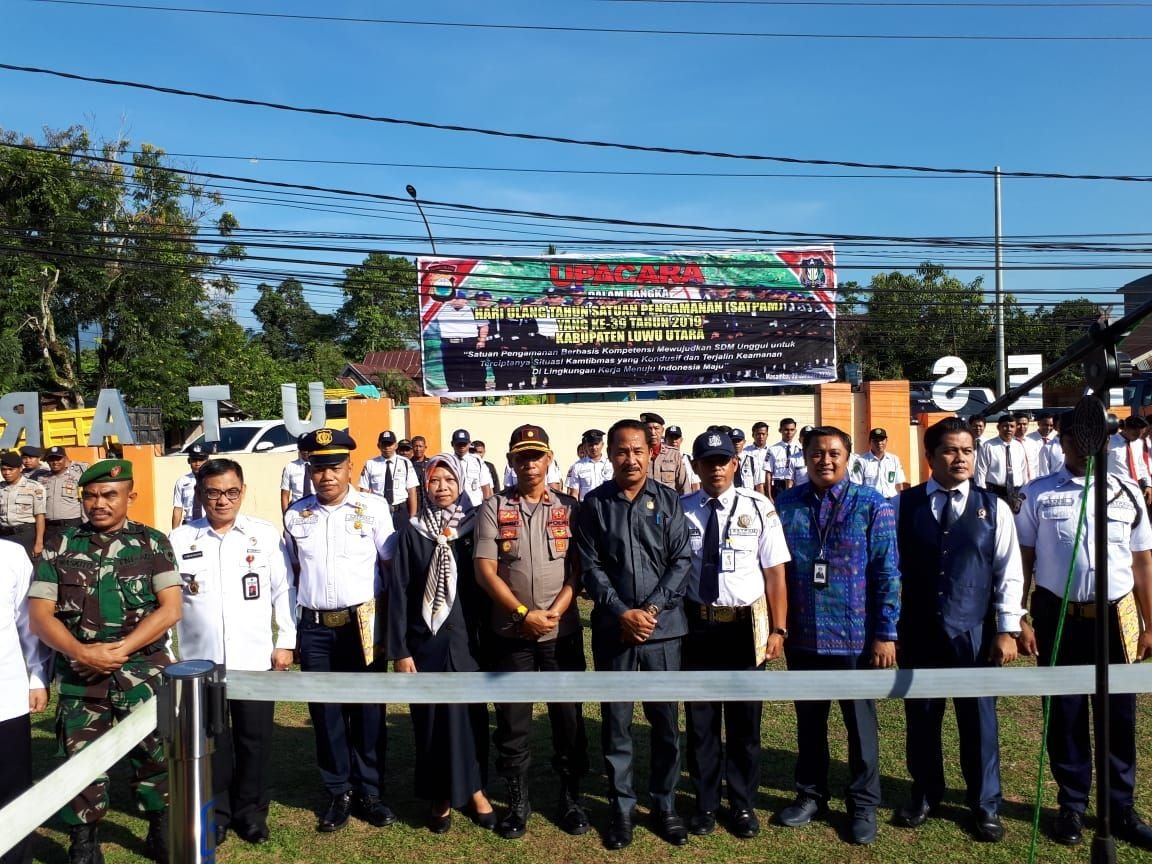 Polres Luwu Utara(Lutra) menggelar upacara dalam rangka memperingati HUT ke-39 Satuan Pengamanan (Satpam)yang bertempat di halaman Mapolres Lutra, Rabu (22/1/2020).
