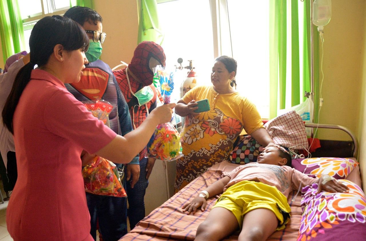 Lebih menarik lagi, "Danar N The Blangkon" memakai kostum Superhero sehingga kian menyemangati pasien anak-anak.