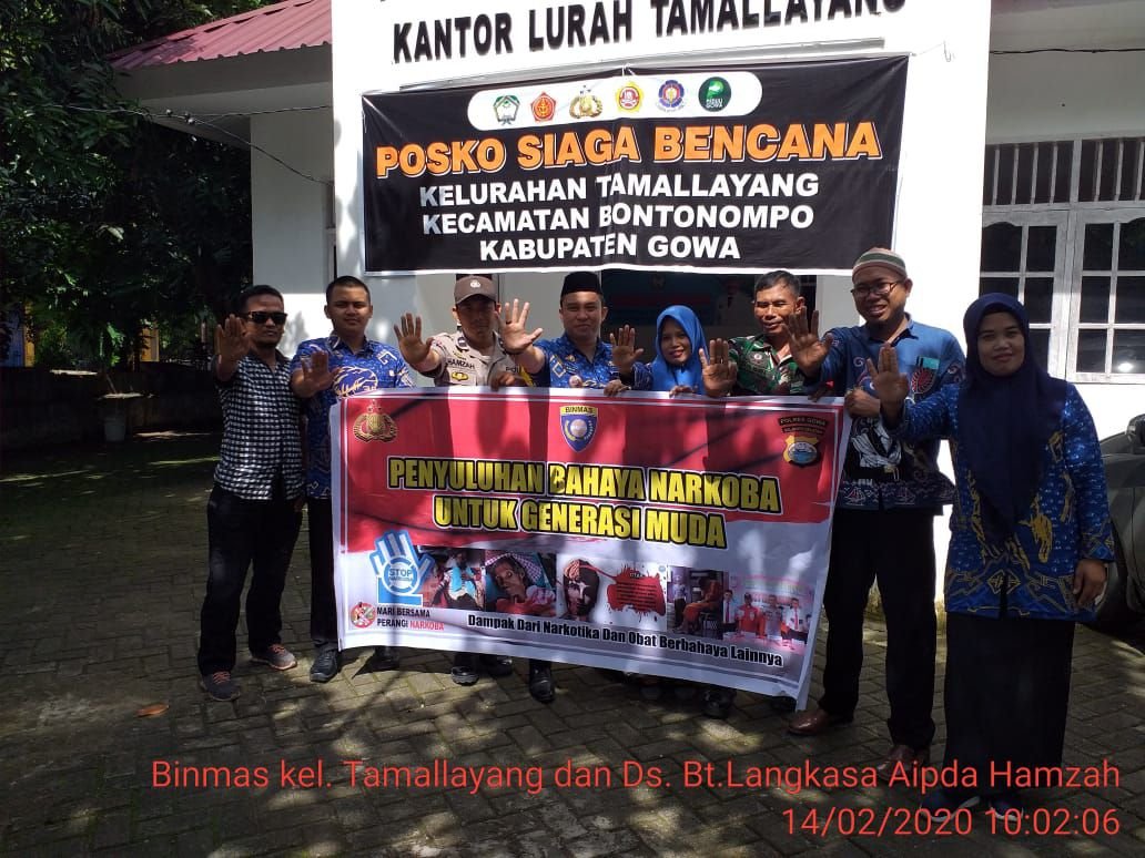 Bhabinkamtibmas Kelurahan Tamallayang polsek Bontonompo Polres Gowa, Aipda Hamzah bersama Babinsa Serka Basri serta Lurah Tamallayang, Arif, S.Sos melaksanakan deklarasi di depan Kantor Kelurahan Tamallayang, Kecamatan Bontonompo, Kabupaten Gowa, Jumat (14/2/2020) sekitar pukul 09.40 Wita.