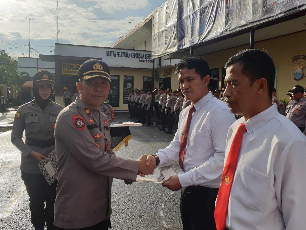 Sebanyak sembilan personel Polres Gowa menerima piagam penghargaan dari Kapolres Gowa AKBP Boy FS Samola, SIK., MH, Senin (17/2/2020) pagi.