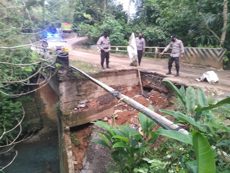 Kapolsek Bungaya Polres Gowa Iptu Hafit Yudin melakukan pengecekan terhadap jembatan Kalu-Kaluku yang berada di Lingkungan Rappodaeng Kelurahan Sapaya, Kecamatan Bungaya, Kabupaten Gowa, Senin (8/11).