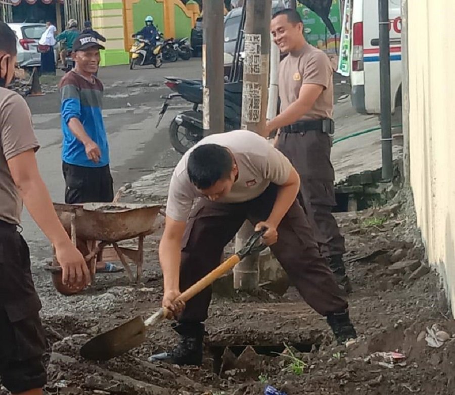 Personil Bagian Logisti Polres Gowa yang dipimpin langsung oleh Kasubbag Belpal Baglog Polres Gowa Iptu Aslamuddin melakukan kegiatan kerja bakti, Selasa (09/11).
